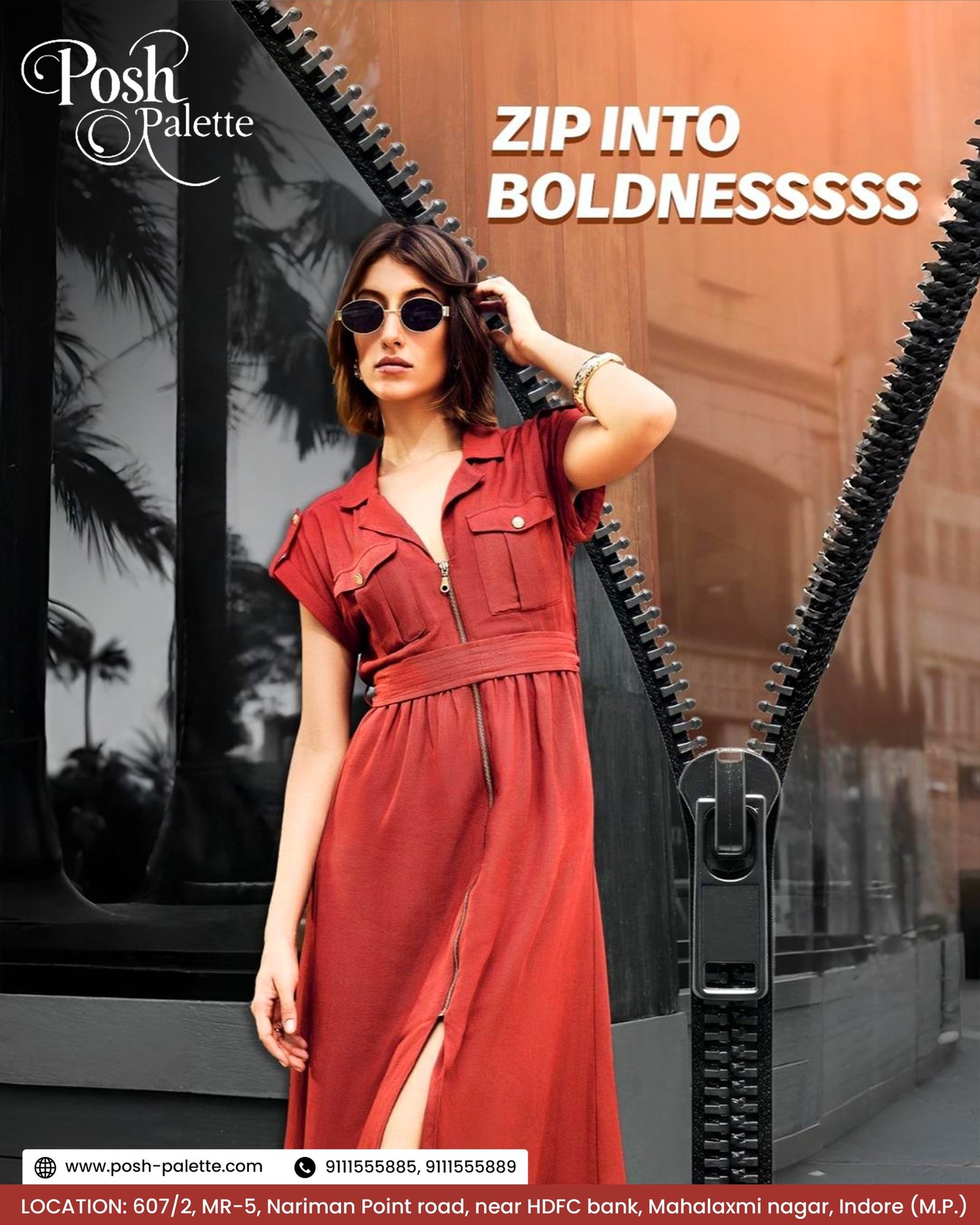 Style: A fiery red midi dress that encourages you to “Zip into Boldness”.
